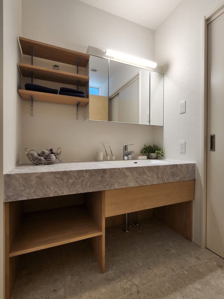 また、洗面室と脱衣スペースを分けることで、誰かが入浴中でも洗面が使えたり、洗面室を誰かが使っているからお風呂からでられな~い!ってこともなくなります!!